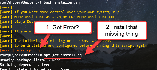For example, if you get [error] missing: jq, then you need to install jq: